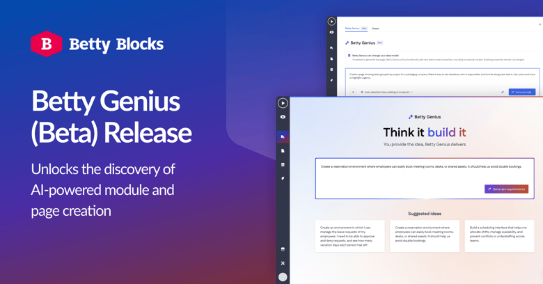 - New module creation via Betty Genius: A new item has been added to the builder bar, allowing you to create modules using Betty Genius. With a single prompt, you can generate pages, layouts, models, and actions required for your application or a specific functional part of it.