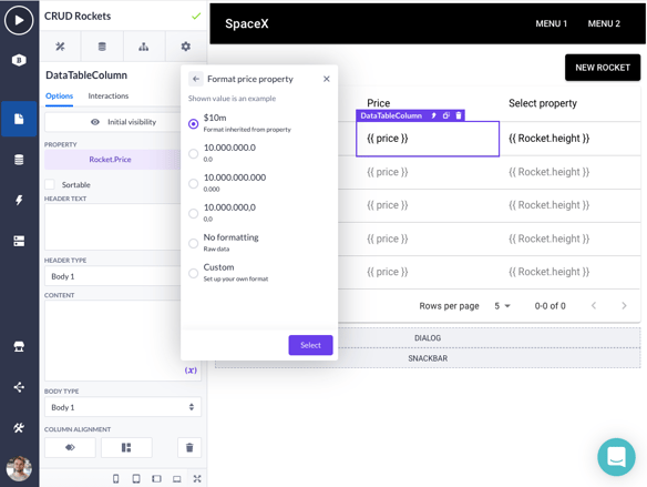 - You are now able to use formatting on date and number properties. The format can be defined on property level and overwritten on component level. Check it out: