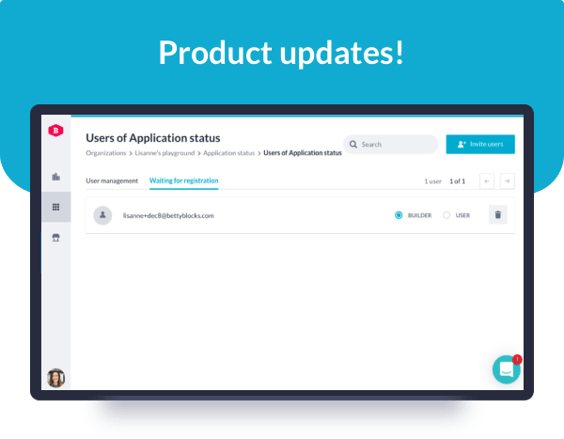 We have released a new user management overview in My Betty Blocks. Here we display new users who have been invited to the platform but still need to complete the registration of their account. This overview gives the organization admin insights...